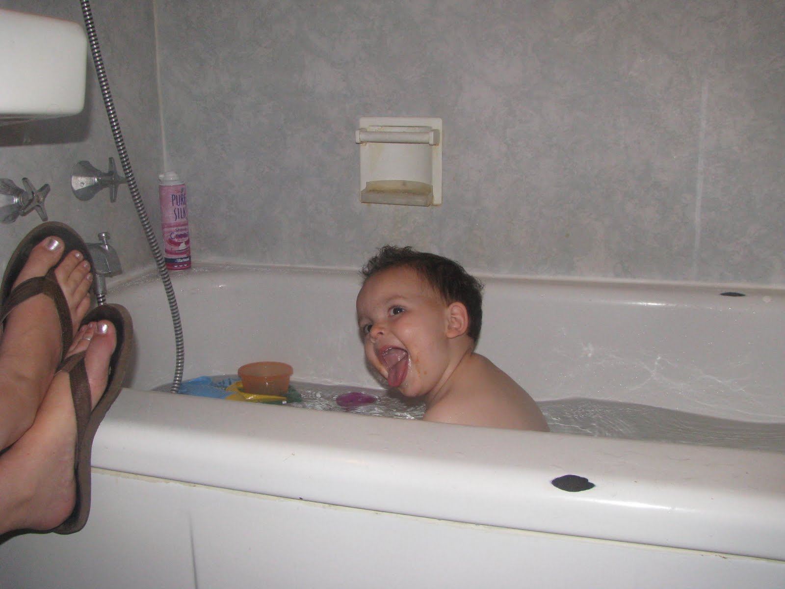 Before Kris left we had the Best Saturday! Kris and I spent Truan's morning naptime in the backyard, prepping the garden, pruning, clearing off and hosing down the back patio. Then we grabbed some lunch and took it to the park for a picnic. The weather was perfection! Truan had a blast going up and down slides until his fat face was pink, Kris had fun running after him and I enjoyed watching from a distance enjoying the sun! After the park, we bought our plants for our vegetable garden and planted them. For dinner we sat out on our clean back porch and roasted hot dogs on sticks over the fire (that I made!). We finished off the night by giving Truan a bath. (I just love the smell of a freshly scrubbed midget) And then Kris and I snuggled up together and watched some SNL. We couldn't have asked for a more perfect day together. Which makes it that much harder to have him gone.